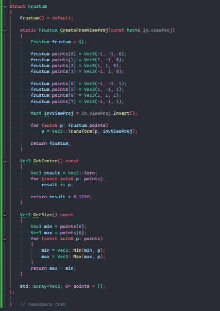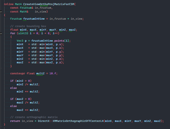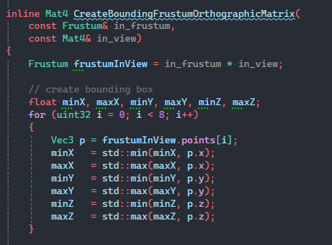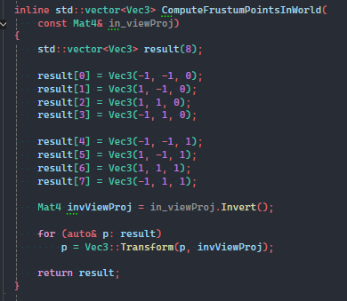 앞서 얻어낸 프러스텀의 좌표들에 뷰 행렬을 곱해주어 조명의 로컬로 변환해주고