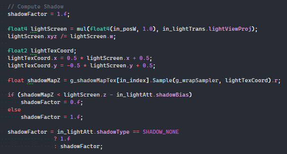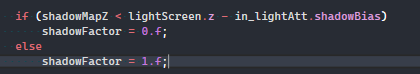 NDC 공간에 있는 z와 그림자 맵에 저장되어있는 z를 비교하여 해당 픽셀이 가려져 있는지 아닌지 알 수 있다.