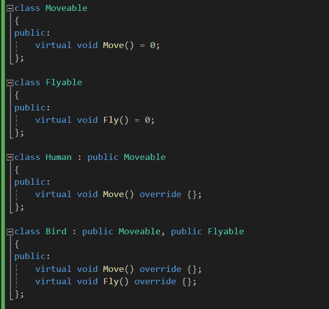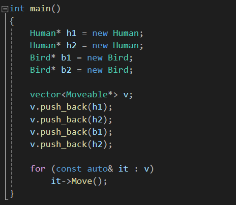 예를 들어서 다음과 같이 Moveable을 상속받는 Human, Bird 객체들을