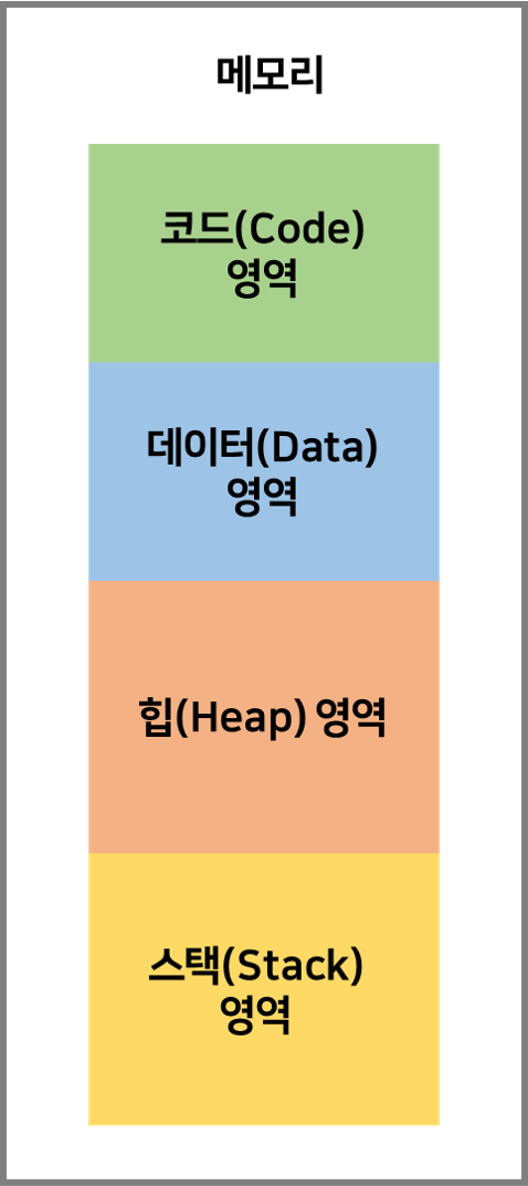 메모리에는 코드, 데이터, 힙, 스택 총 4개의 영역이 존재하는데요