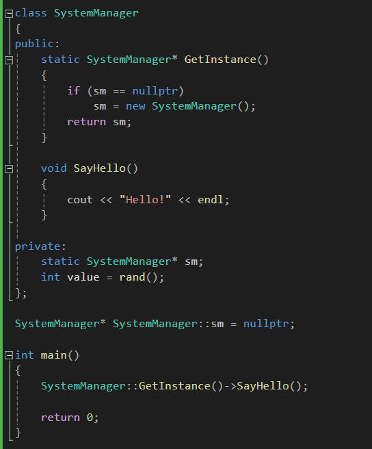 GetInstance라는 함수하나로 class의 내부 static이 아닌 변수와 함수들까지 접근이 가능하다는 것이 큰 장점인 것 같습니다.