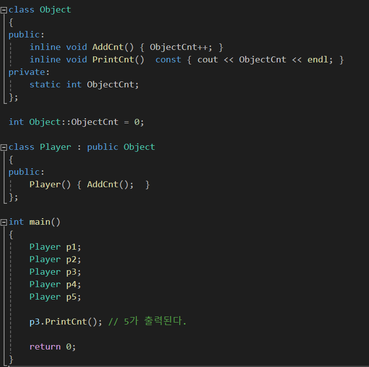 정적 함수인 PrintCnt를 호출하는 모습을 볼 수 있습니다.