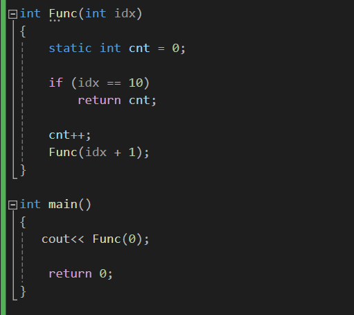 Func의 첫 줄에서 cnt를 계속 0으로 초기화하니까 정답은 0일까요?