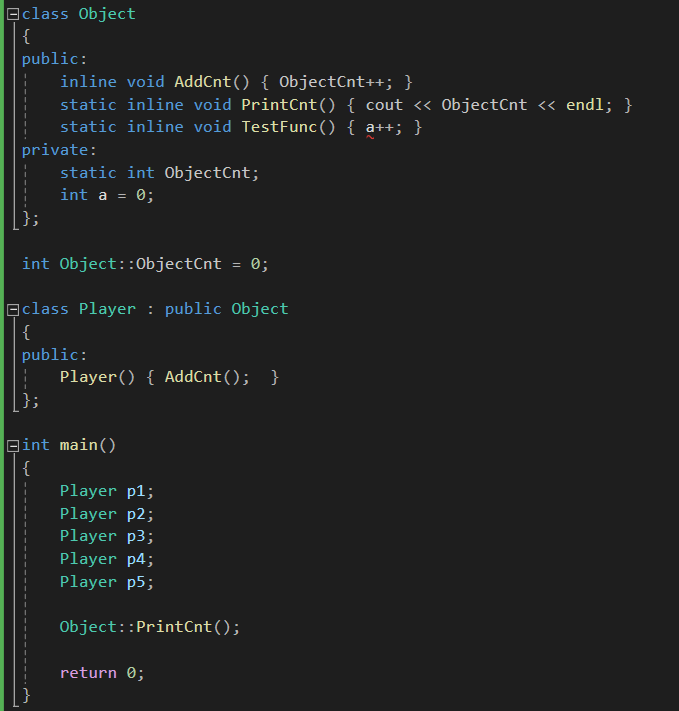 정적 멤버 함수를 사용하면 굳이 개체를 생성하지 않고도 함수에 접근할 수 있게 됩니다.