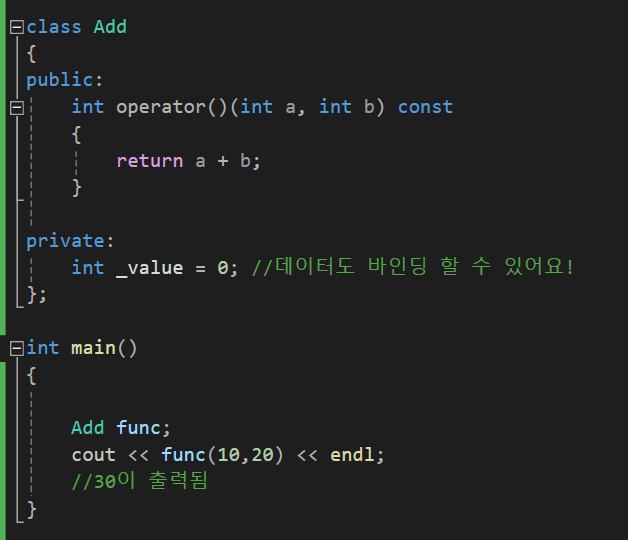 Add 클래스를 마치 Add에 대한 함수 포인터로 쓰는 것처럼 사용할 수 있습니다.