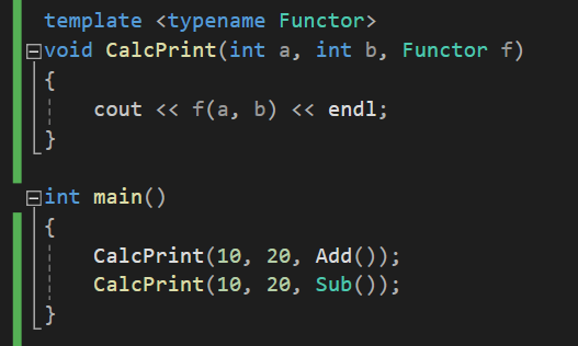 또, 함수 객체를 매개변수로 넘겨주고자 할 때, 템플릿 문법을 사용하면