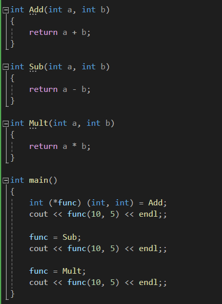 이런 식으로 함수에 별칭을 붙이는 느낌으로 사용할 수 있는 것이 함수 포인터입니다.