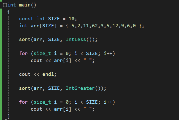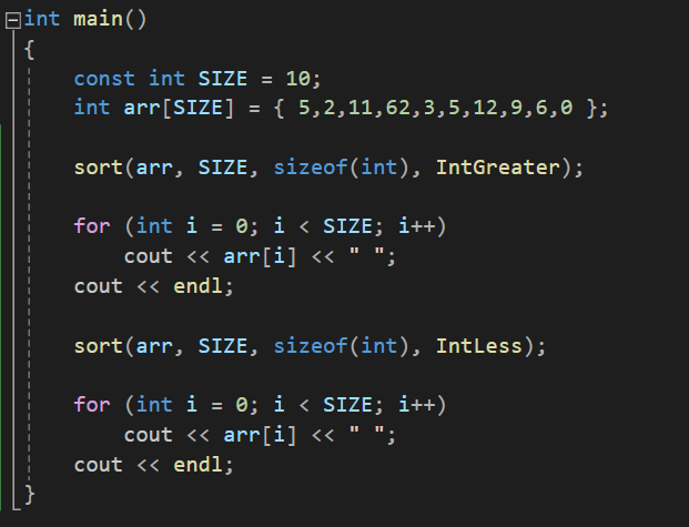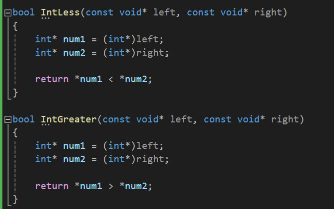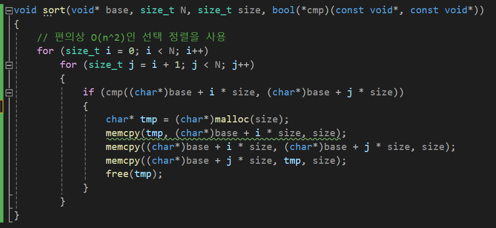 그래서 이를 해결하기 위해, 비교 함수 포인터를 매개변수에 추가하여, sort 함수를 사용할 때 직접 알맞은 함수를 만들어서 넘겨주는 방식으로 사용할 수 있습니다.