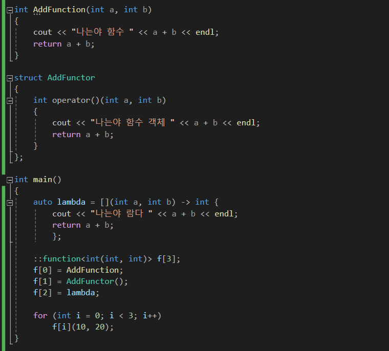 그러나 std::functional을 통해서 callable 한 함수들을 한 번에 관리할 수 있는 것은