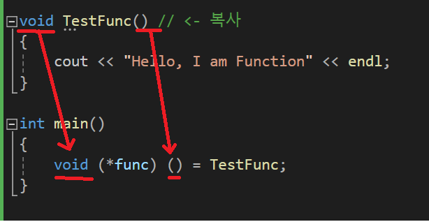 그러나 함수 포인터 자체가 조금 난해할 수 있는 문법이라는 것은 논외로 두고