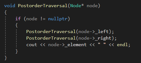 루트가 nullptr인 노드를 발견할 때까지 함수는 계속 실행됩니다.
