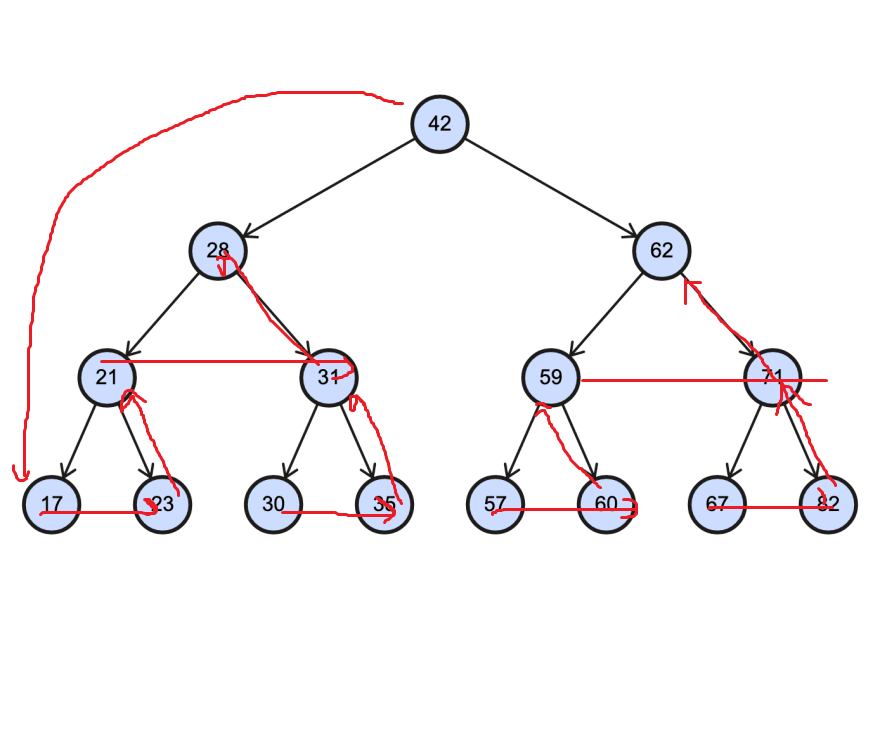 42 -> 28 -> 21 -> 17 -> 23 -> 31.. 등