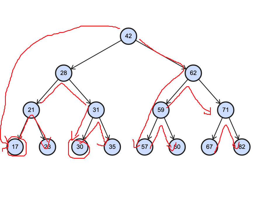 찾고자 하는 값이 루트의 값보다 크면 오른쪽으로, 아니면 왼쪽으로..