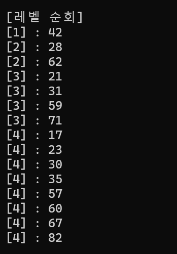 cout << "[" << hereLevel << "] : " << hereNode->_element << endl;