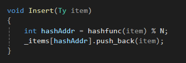 int hashAddr = hashfunc(item) % N;