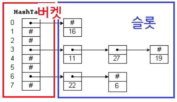 이때, 연결 리스트의 head를 저장하는 부분을 버켓