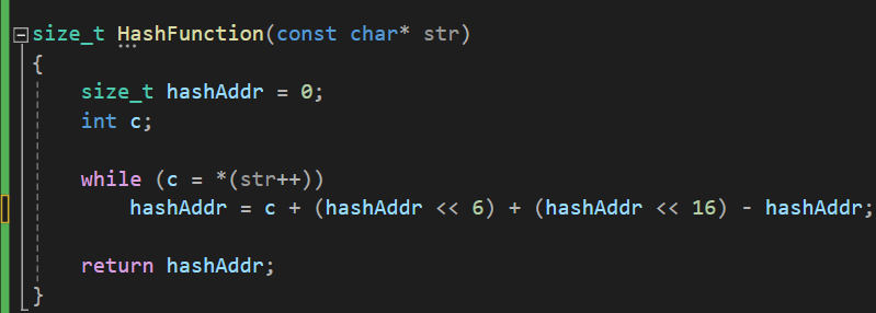 hashAddr = c + (hashAddr << 6) + (hashAddr << 16) - hashAddr;