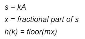 해쉬 테이블의 버켓 수가 m이라고 하고, 키를 k라고 할 때,