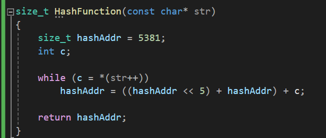 hashAddr = ((hashAddr << 5) + hashAddr) + c;
