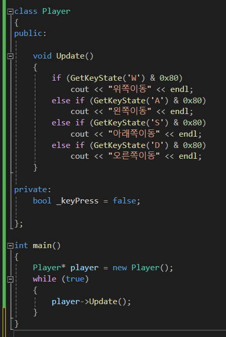 Update에서는 계속 command 를 탐색하면서 키가 눌렸는지 안눌렸는지 체크하기 때문에