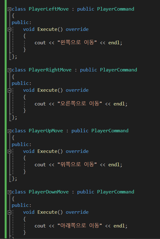 | [C++/디자인패턴] 상태 패턴 (State Pattern) (0) | 2024.01.28 |