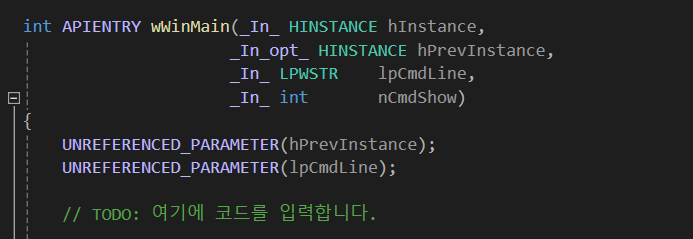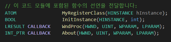 어쨌든 이 구조가 기본 window 프로그램을 만들기위한 프레임워크입니다.