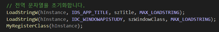 MAX_LOADSTRING 만큼 읽어와서 저장하는 역할을 합니다.