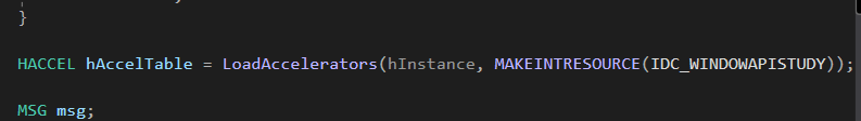 IDC_WINDOWAPISTUDY에 있는 Accelerator 단축키 정보를 가져와서 핸들 인스턴스에 등록합니다.