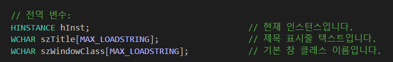 즉, hInst는 우리 프로그램이 메모리 상에 올라가서 자리를 차지할텐데