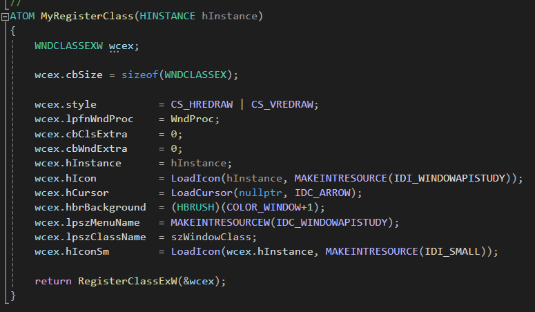 다음 MyRegisterCalss 함수를 호출합니다.