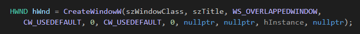 CreateWindowW 라는 함수가 핸들윈도우를 만들어서 반환하는 함수입니다.