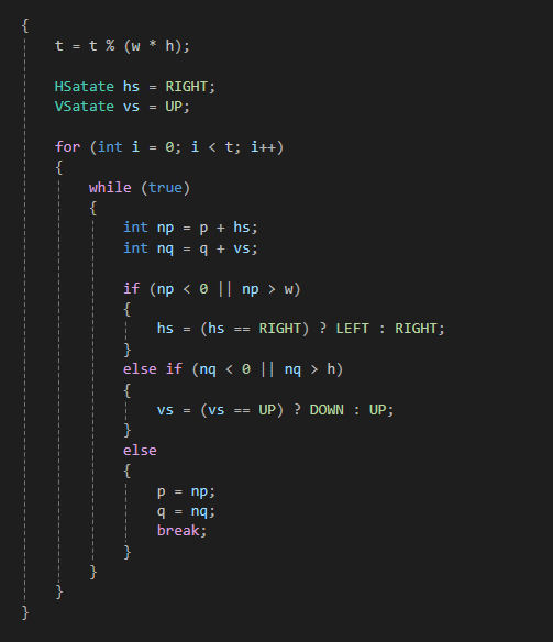 x축은 (p + t) % (2*w) 에서