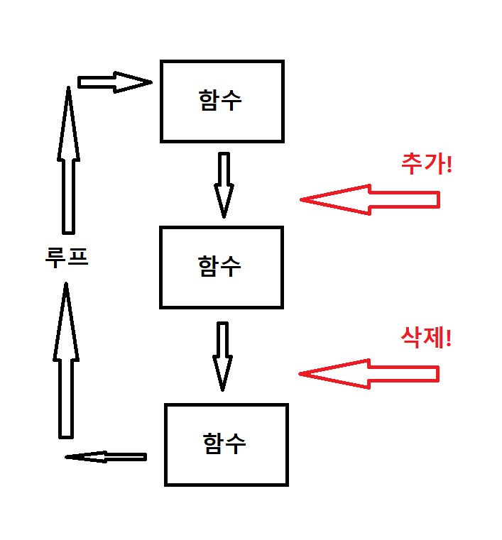 이런 식으로 루프 중간중간에 막 추가해버리면