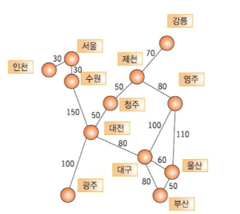 위 그림은 여러 개의 도시들이 어떻게 연결되었는지를 보여준다.