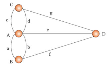 위 문제는 "임의의 지역에서 출발하여 모든 다리를 단 한번만 건너서 처음 출발했던 지역으로 돌아올 수 있는가?"이다.