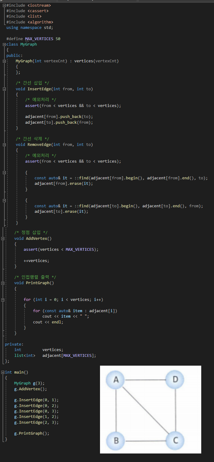 참고: 연결리스트는 따로 구현하지 않고, list 라는 STL을 사용하였음. vector을 사용해도 무관