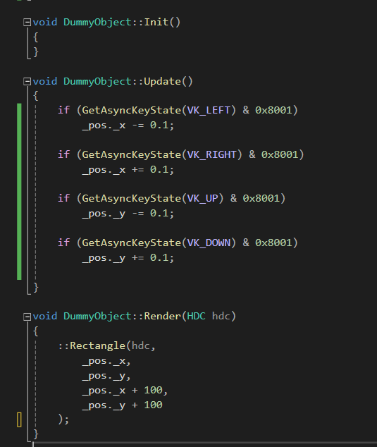 최근에 만들 윈도우 API 프로그램입니다. 방향키를 누르면 사각형이 이동합니다. 그런데 이동을 하면 잔상이 남는 모습을 볼 수 있습니다. 그림을 그리는 것은 모니터의 픽셀 버퍼에 원하는 값을 저장하는 형식으로 진행됩니다. 우리가 이전 버퍼를 지워주지 않았으니 이렇게 잔상이 남는 것이죠. 이런 식으로 매우 큰 흰색 사각형을 그려줘서 지워주는 건 어떨까요? 아마 매우 빠르게 깜빡 깜빡 거릴겁니다. 이게 왜 그렇냐면 그리기 버퍼를 단 1개만 사용해서 그렇습니다. 컴퓨터가 아무리 빨라도 화면에 픽셀을 하나하나 그려서 모두 그리는데 시간이 걸리겠죠? 저 코드를 넣어주면, 컴퓨터가 원하는 그림을 먼저 싹 그린 다음에 흰 색 큰 사각형을 싹 그려주고.. 를 반복합니다. 그러면 깜빡깜빡 거린다는 거죠. 깜빡이는 이유는..